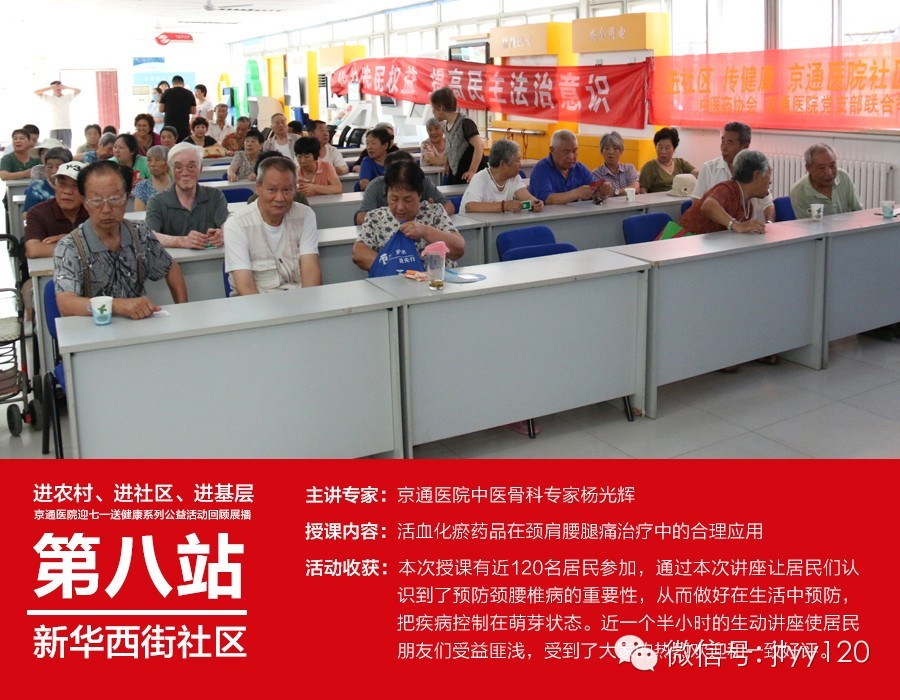 为迎接党的生日,发扬党的优良传统,以实际行动践行全心全意为人民服务的宗旨,由中医药行业协会联合北京京通医院党支部开展的“进社区、传健康、北京京通医院社区行”大型健康系列讲座活动,历经半个月的时间,终于拉下了帷幕。现在就让京通小编带您一起回顾下这段传播健康的快乐旅程吧!