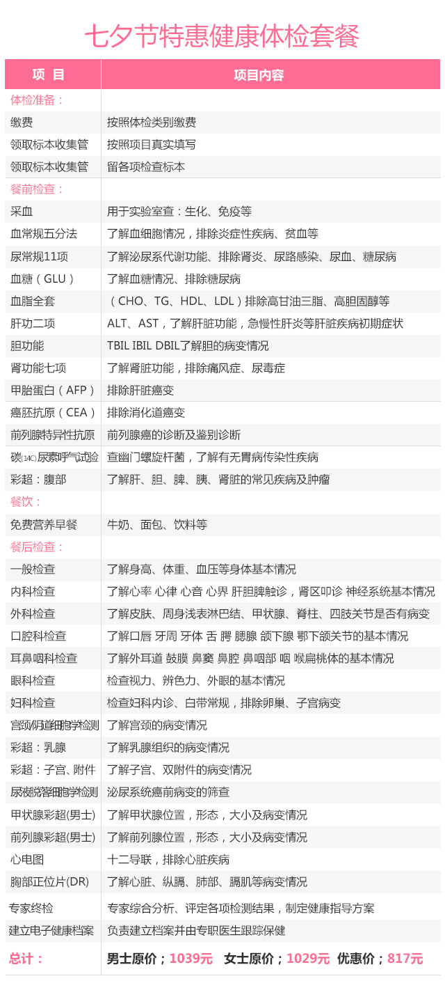 七夕情人节,是中国传统节日。相传,七夕节这天,王母娘娘准许牛郎织女通过喜鹊搭建的鹊桥来相会。牛郎织女一年就只有七夕这天能够相会,象征着爱情的坚贞不渝。2018年8月17日,北京京通医院为庆祝七夕节到来,特意推出七夕情侣健康体检套餐,这个七夕节,我对你最好的爱,便是送你一份健康,我们一起白头偕老。